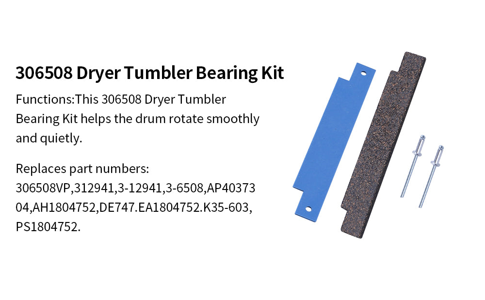 3. 12001541 replaces part numbers: 12001541VP, 303373, 3-3373, 400518, AP4008534, K35-248, W10116741, Y303373, PS1570070, AH1570070, EA1570070, DE693. 306508 replaces part numbers: 306508VP, 312941, 3-12941, 3-6508, AP4037304, AH1804752, DE747, EA1804752, K35-603, PS1804752