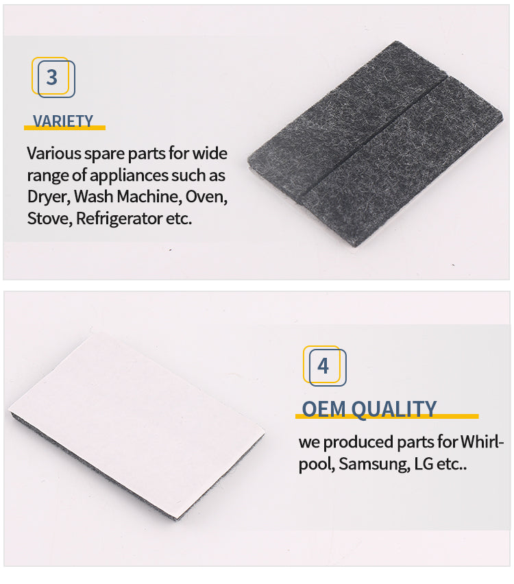We produce full range of Appliance Parts for over 20 years, we have professional R&D department and QC team. Our sales team have over 20 years foreign trade experience. We do OEM parts for lot of top brands such as Whirlpool, Samsung and LG etc.