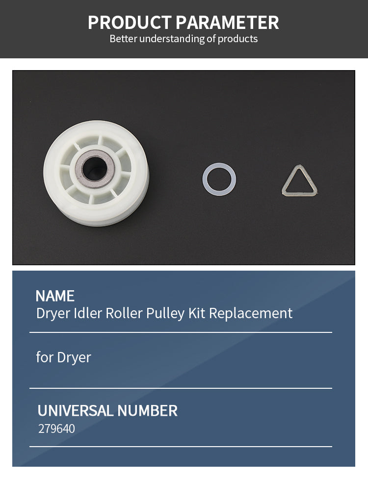 4.Resolves the following issues:Squeals/Does not rotate/Will Not Start/The drum rotates intermittently but clunks.