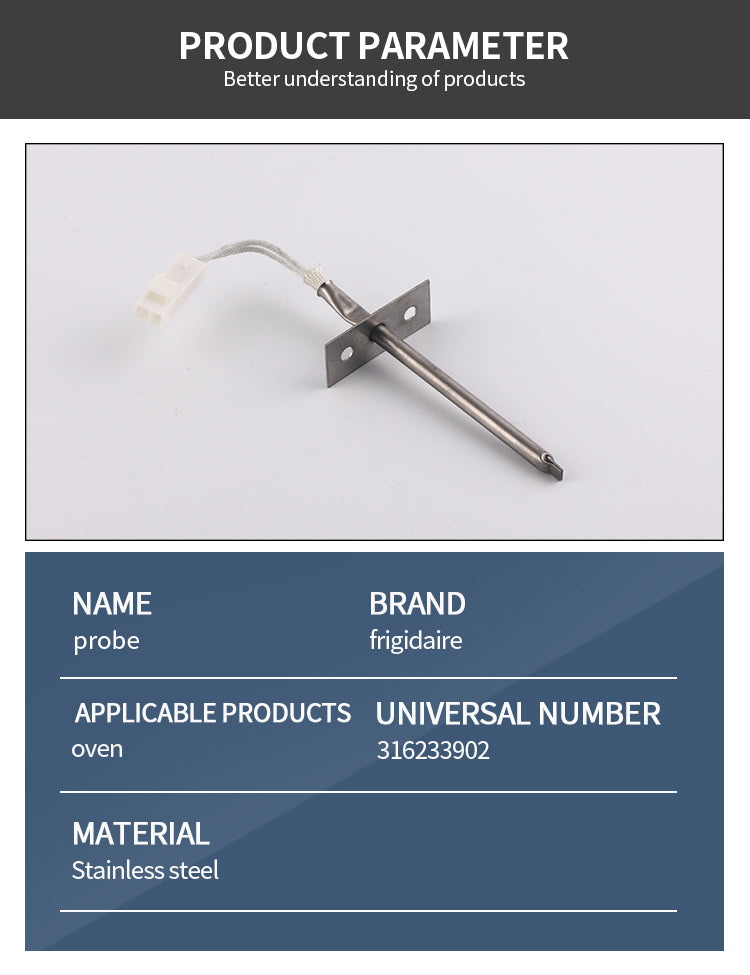 3.316233902 The temperature sensor thermistor monitors the temperature of the electric oven. If the temperature fluctuates from the set value, this sensor will inform the thermostat if heat is needed.