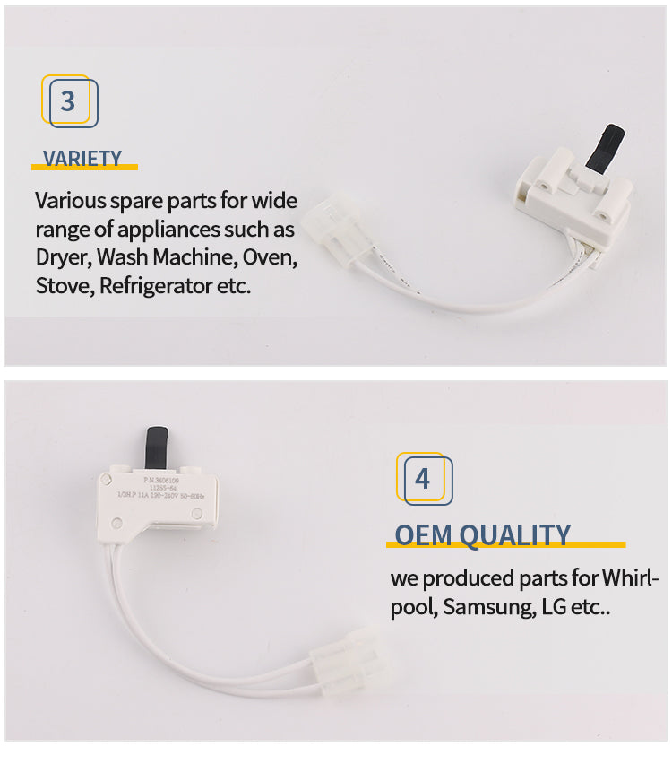 We produce full range of Appliance Parts for over 20 years, we have professional R&D department and QC team. Our sales team have over 20 years foreign trade experience. We do OEM parts for lot of top brands such as Whirlpool, Samsung and LG etc.