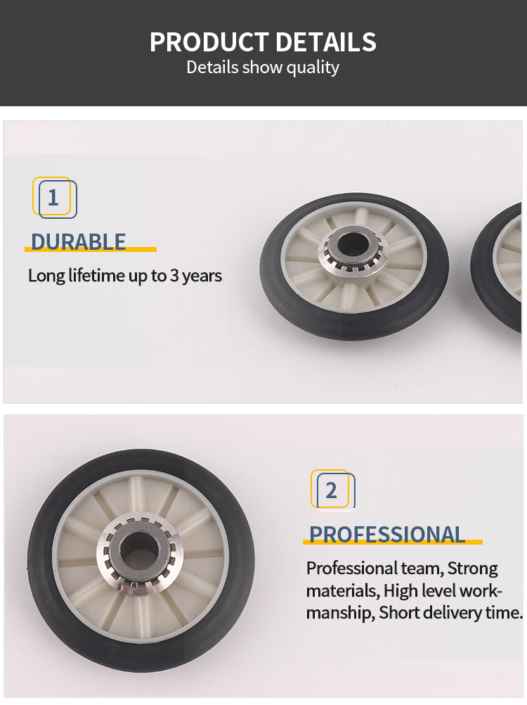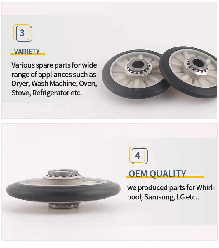 2.Whirlpool, Kenmore, Admiral, Amana, Crosley, Magic Chef and more brand. Includes 2 x drum rollers, 4 x tri-rings, 2 x retainining