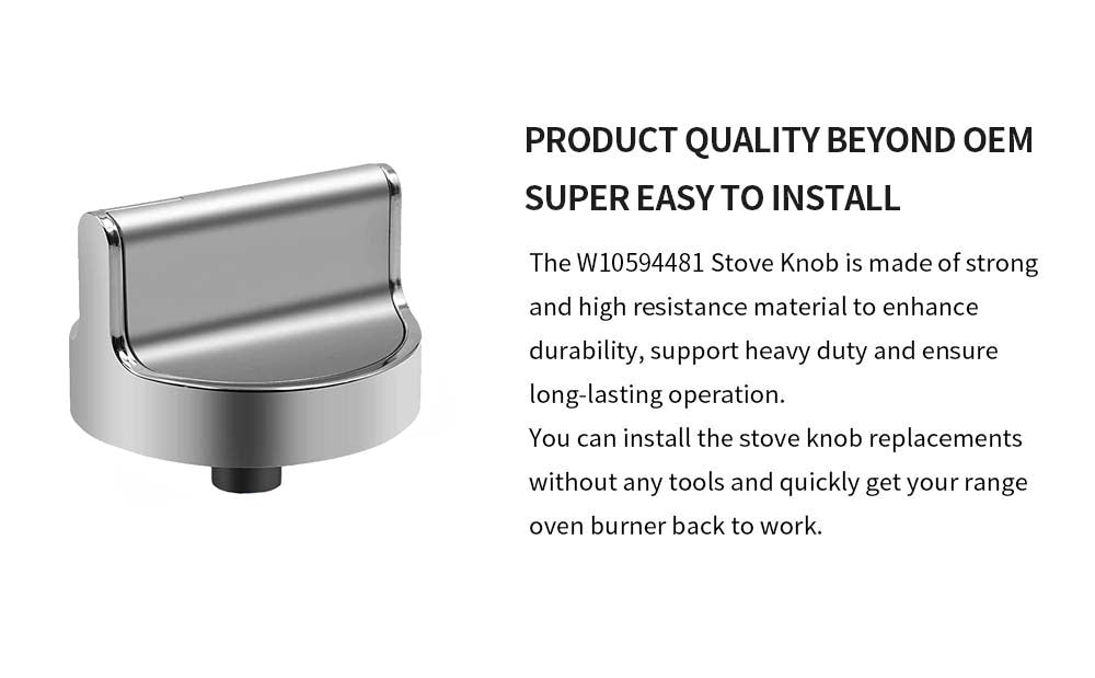 1. W10594481 Cooktop Stove Knob replaces part number:WPW10594481, AP6023301, PS11756643.