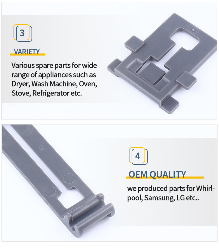 We produce full range of Appliance Parts for over 20 years, we have professional R&D department and QC team. Our sales team have over 20 years foreign trade experience. We do OEM parts for lot of top brands such as Whirlpool, Samsung and LG etc.