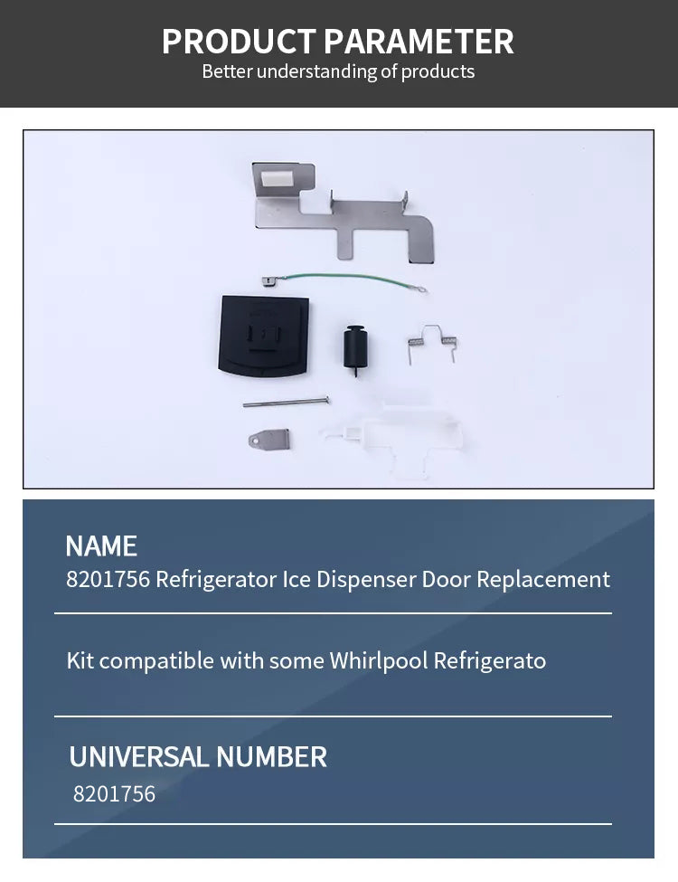 1.Include Parts : 8201756 Refrigerator Ice Dispenser Door. This Part Replaces AP4453798, PS4218879, 3998155, EAP4218879.
