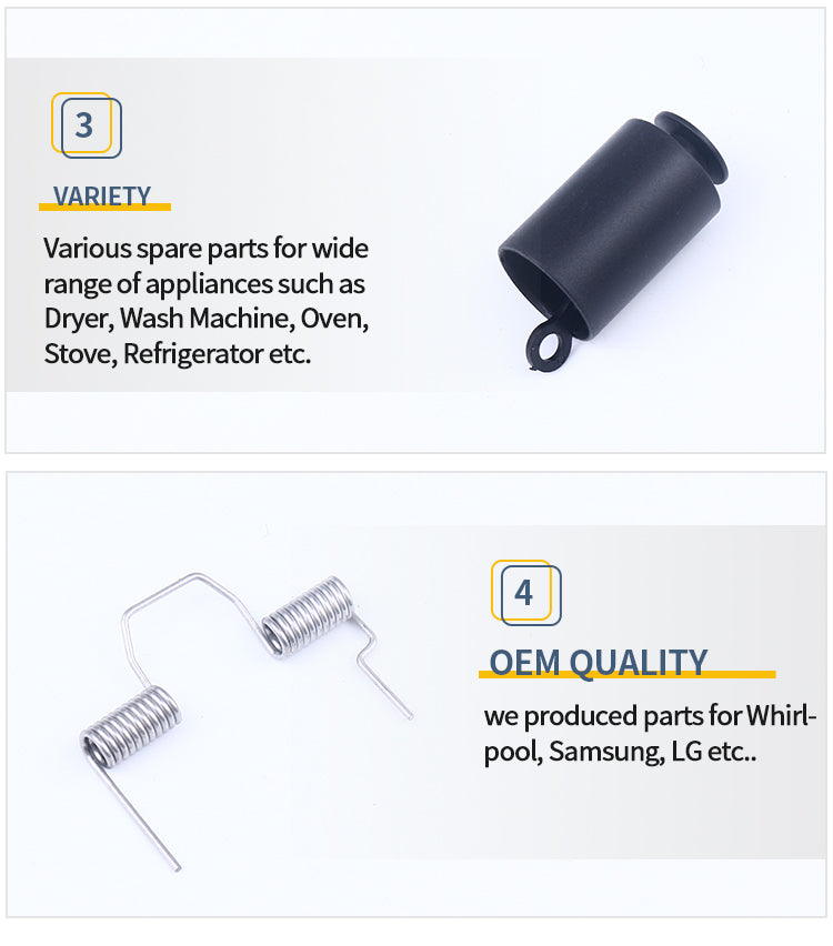 We produce full range of Appliance Parts for over 20 years, we have professional R&D department and QC team. Our sales team have over 20 years foreign trade experience. We do OEM parts for lot of top brands such as Whirlpool, Samsung and LG etc.