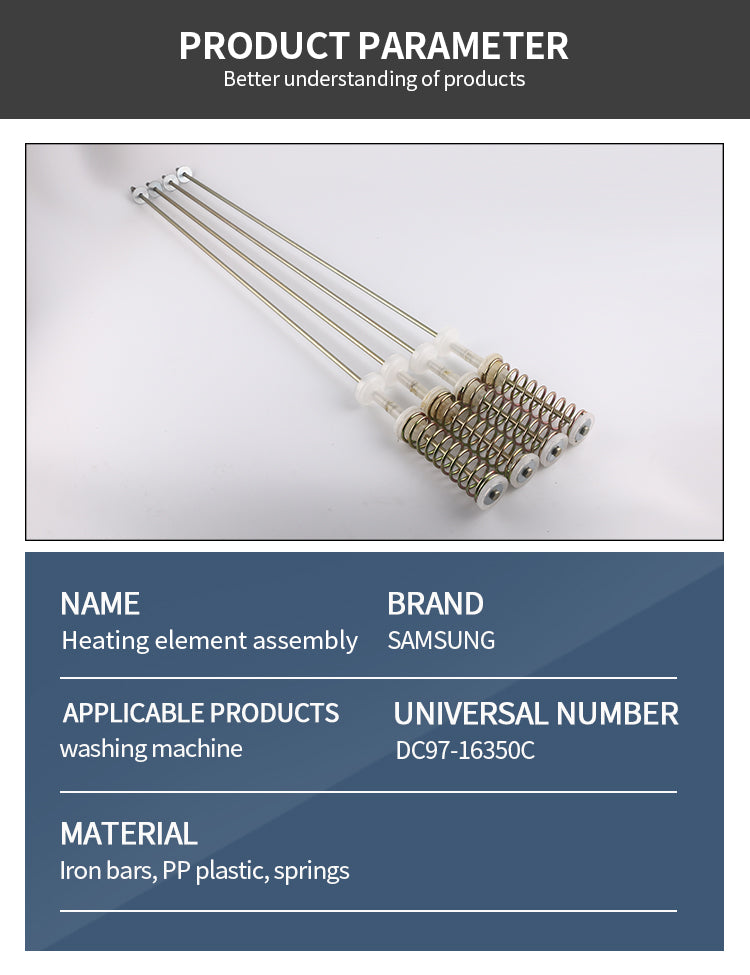 1.Parts number:The DC97-16350C×4pcs Samsung washing machine springs. Made of high-quality and high-quality materials.The part models are compatible with AP5623264, 3282689,DC97-05280K,DC97-16350J,PS4221572