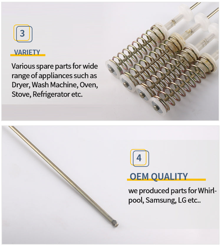 2.The suspension rod of the dc97-16350c Samsung washing machine suspension spring is approximately 25.8 inches in length.The DC97-16350C suspension rod and spring assembly repair The damaged and unbalanced washing machine with symptoms and make The machine work as normal