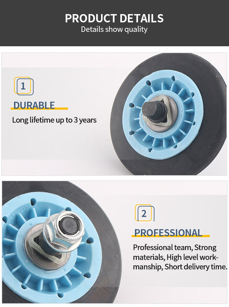 4.Fix Common Symptoms: Dryer is squeaky or noisy; Dryer won’t tumble or spin; Dryer will not start. Easy to install. Refer to YouTube installation video before installation. Dear friends, use your brain and hands to make your machine work!
