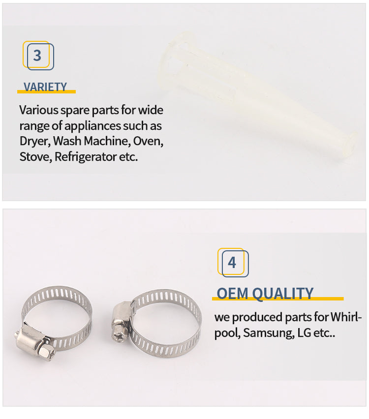 We produce full range of Appliance Parts for over 20 years, we have professional R&D department and QC team. Our sales team have over 20 years foreign trade experience. We do OEM parts for lot of top brands such as Whirlpool, Samsung and LG etc.