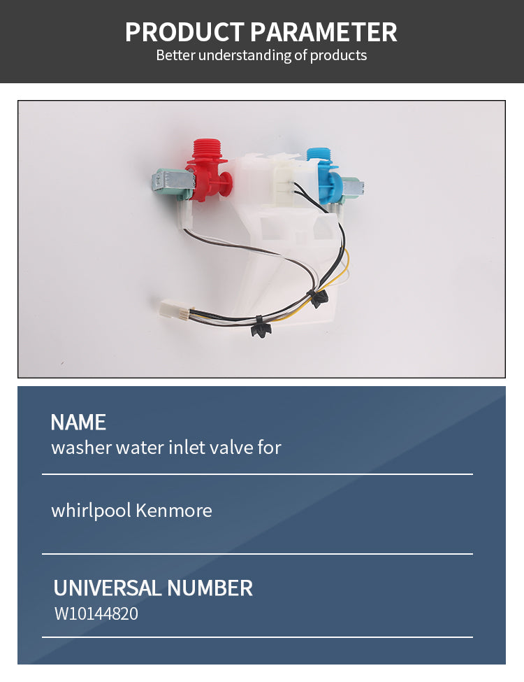 4.W10144820 water valve is made of high-quality materials, increased thread thickness, enhanced sealing, and has undergone strict functional tests before leaving the factory to maximize its service life. It mainly solves the problems of water leakage, short circuit, imbalance of hot and cold water, inaccurate water level and loud noise.