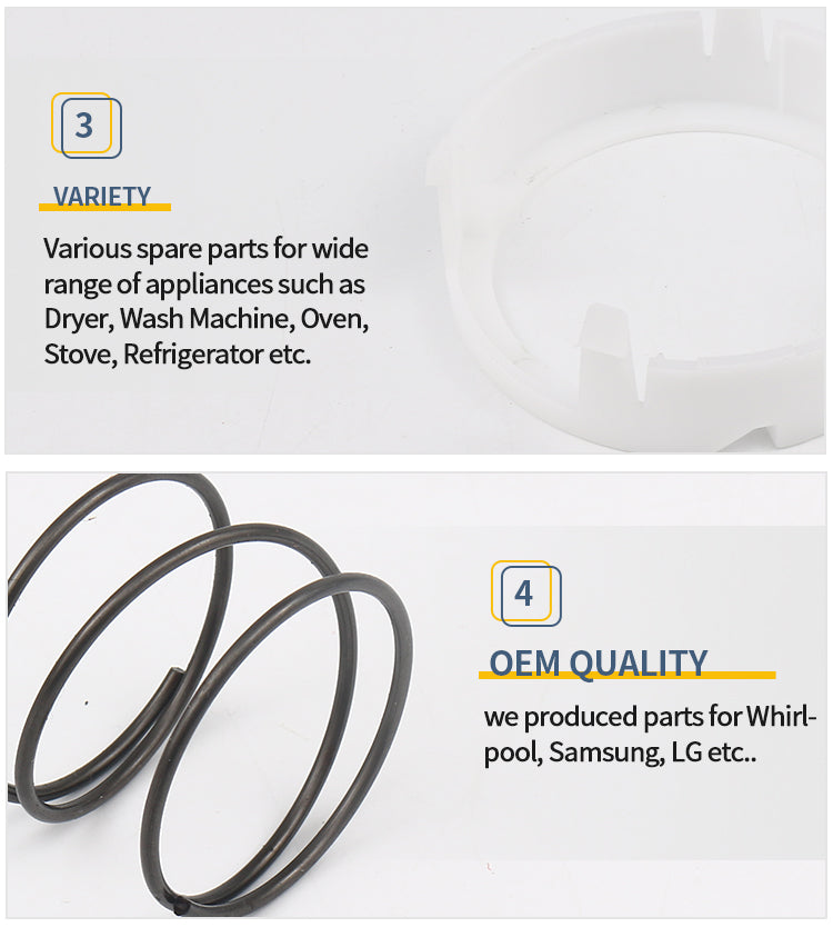 We produce full range of Appliance Parts for over 20 years, we have professional R&D department and QC team. Our sales team have over 20 years foreign trade experience. We do OEM parts for lot of top brands such as Whirlpool, Samsung and LG etc.