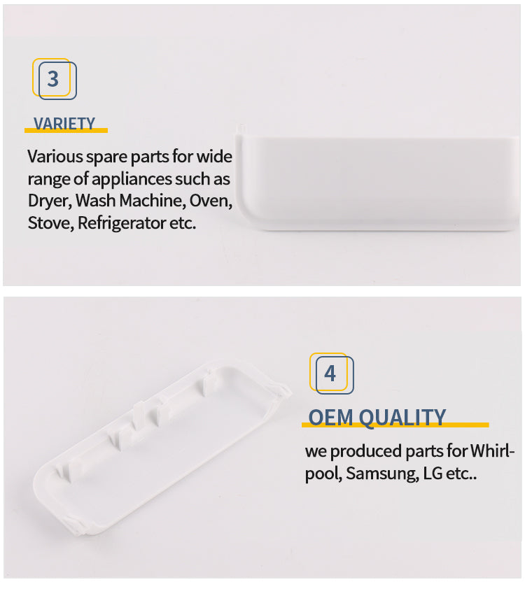 We produce full range of Appliance Parts for over 20 years, we have professional R&D department and QC team. Our sales team have over 20 years foreign trade experience. We do OEM parts for lot of top brands such as Whirlpool, Samsung and LG etc.