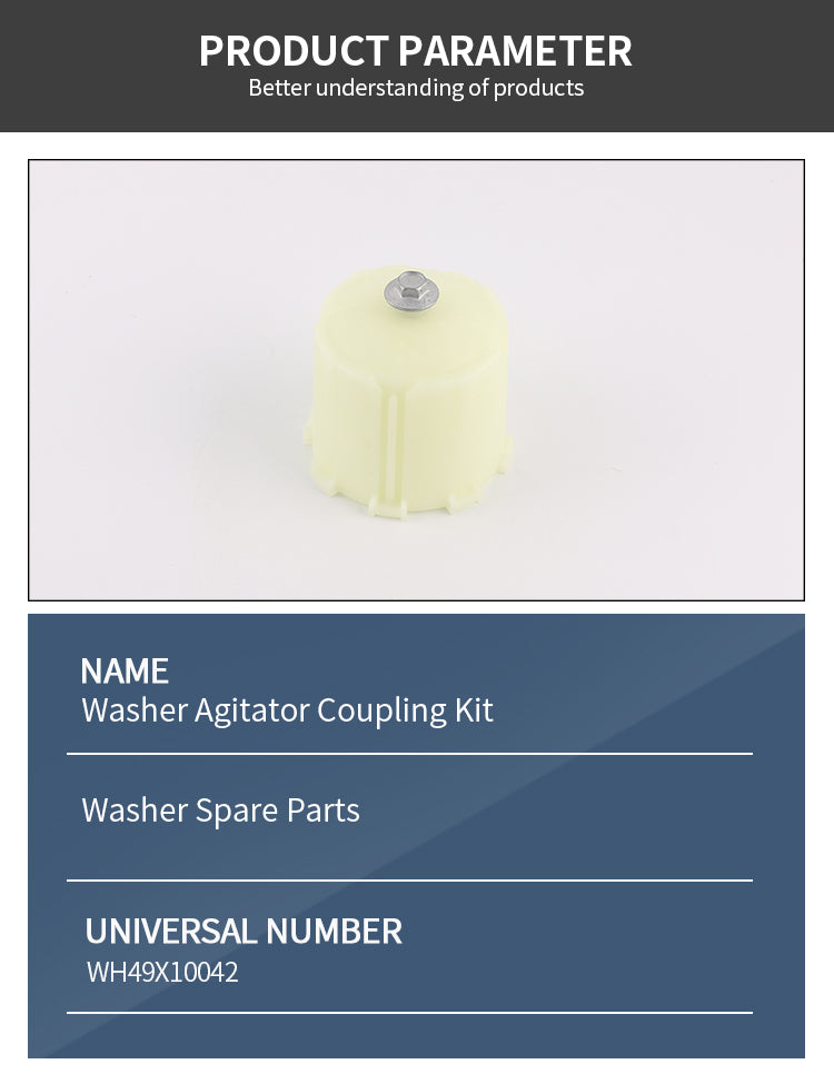 1.WH49X10042 Washer Agitator Coupler Kit goes between the transmission and the agitator. Includes hold-down bolt