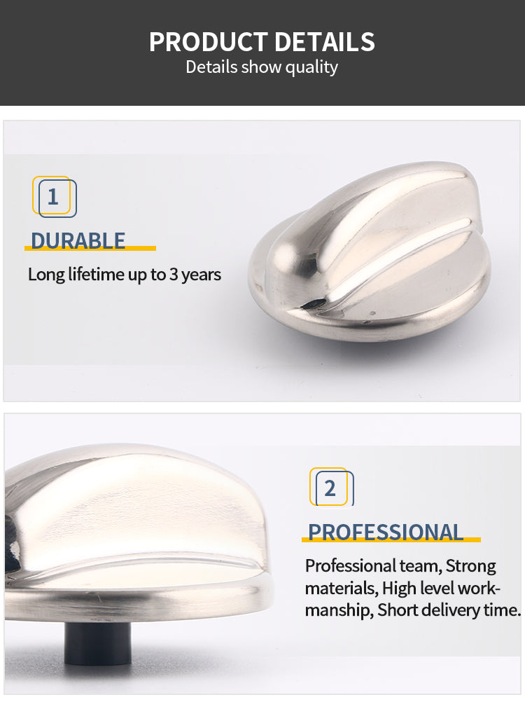 3.includes 5 x WB03K10303 metal stainless knobs. and the back is made of durable plastic structure, which has balanced characteristics. It allows you to control the temperature of the burner and this knob shaft has a piece of iron in it that extends the life of the knob and strengthens the knob.
