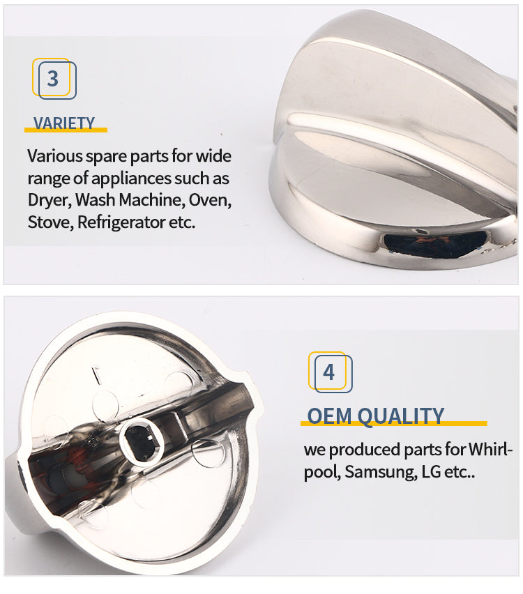 2.GE range knobs WB03T10284 directly replaces 1373043, AP4346312, AH2321076, EAP2321076, PS2321076, PD00001523, WB03T10284 etc. WB03T10284 GE appliance knob compatible with most kitchen appliances from GE series, such as JSP42SN3SS, ECBP82SM1SS, ECBP82SM2SS, JB650ED1ES, JB650ST1SS, JB650ST2SS, JB650ST3SS etc.If you are not sure if WB03T10284 ge appliance knob is suitable for your machine, please contact us and we will be happy to solve this problem for you.
