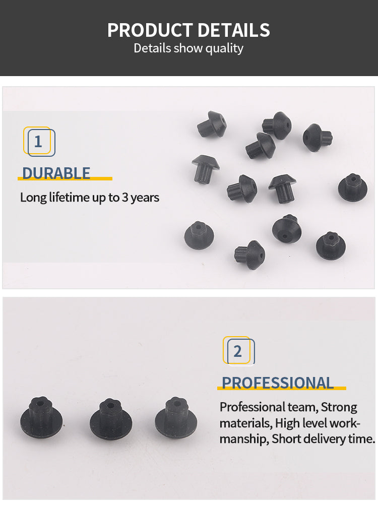 4.Made entirely of rubber, Fits in a 3/16" hole. Measurements: Depth is .255" (a little bigger than 1/4" inch) The post (or part that inserts into your grate) measures .178" - .180" (about 3/16") in diameter