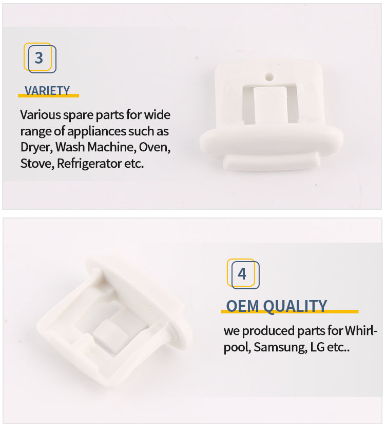 We produce full range of Appliance Parts for over 20 years, we have professional R&D department and QC team. Our sales team have over 20 years foreign trade experience. We do OEM parts for lot of top brands such as Whirlpool, Samsung and LG etc.