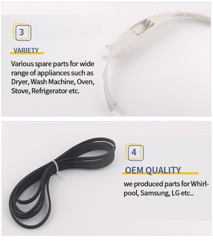 We produce full range of Appliance Parts for over 20 years, we have professional R&D department and QC team. Our sales team have over 20 years foreign trade experience. We do OEM parts for lot of top brands such as Whirlpool, Samsung and LG etc.