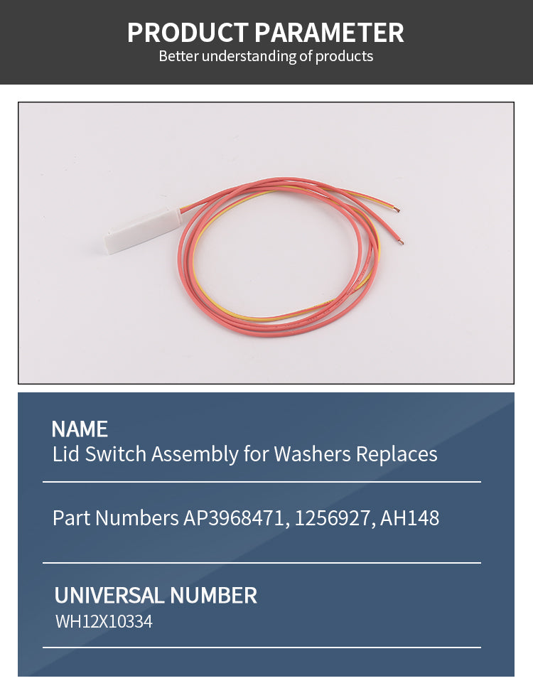 2.Compatible models: WH12X10334 washer lid switch is perfectly compatible with GE, Hotpoint, Kenmore washing machines. WH12X10334 directly replaces WH12X10334, B004H3XUQ2, AP3968471, 1256927, AH1482372, EA1482372, PS1482372