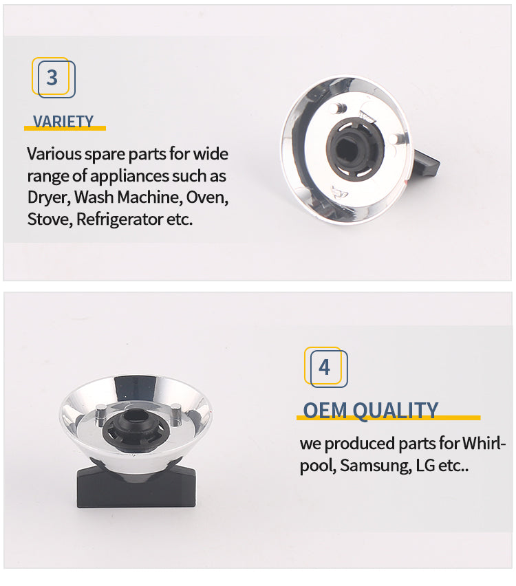 We produce full range of Appliance Parts for over 20 years, we have professional R&D department and QC team. Our sales team have over 20 years foreign trade experience. We do OEM parts for lot of top brands such as Whirlpool, Samsung and LG etc.