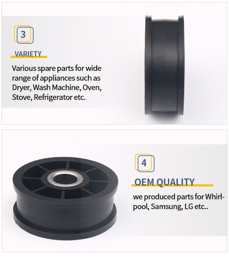 2.Dryer Idler pulleys may become worn, grooved, or damaged over time causing them to no longer hold your belt in the proper position.